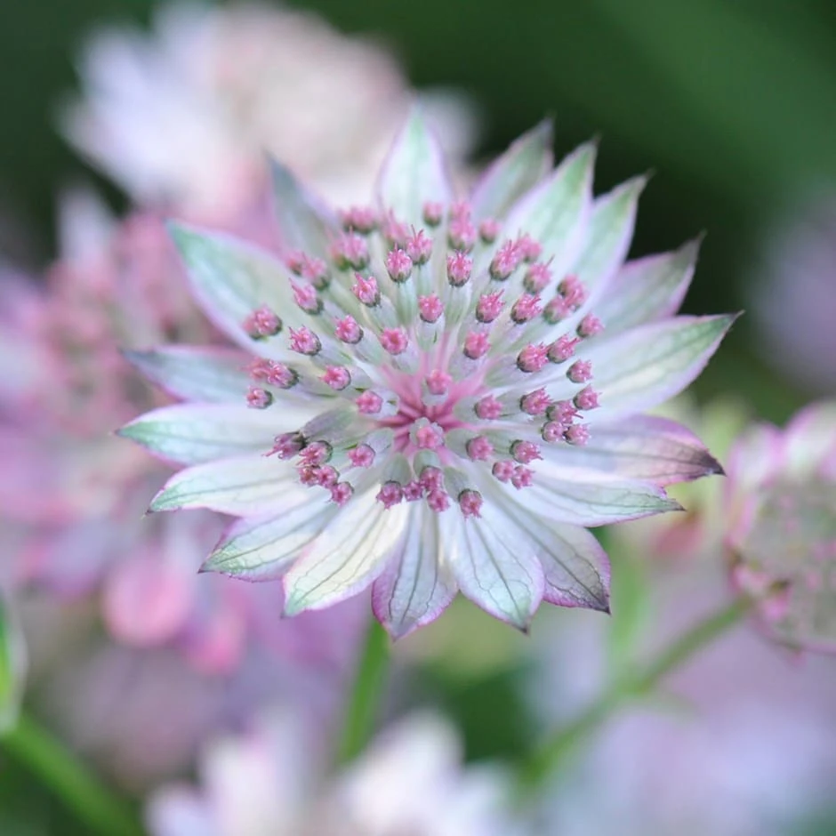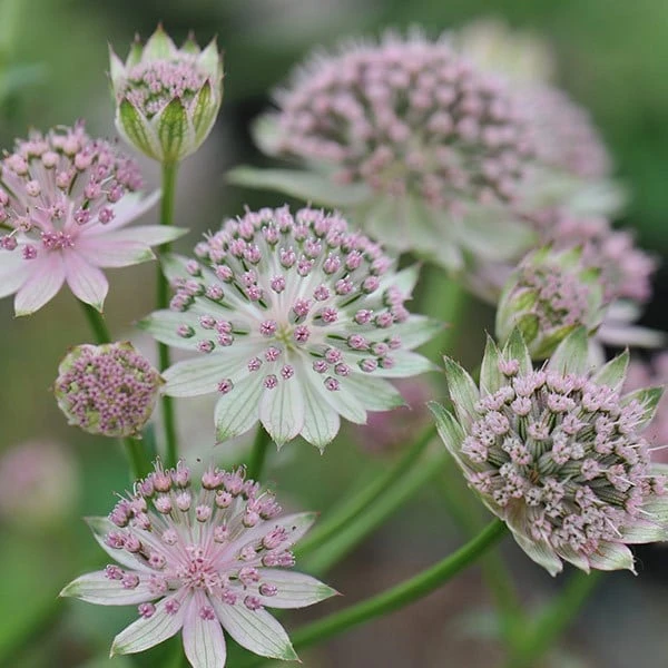 Dusty pink flowers are surrounded by broad, silvery white bracts, which have attractive green veining and tips. This astrantia often comes into bloom earlier than many of the other cultivars, but as the flowers are sterile it will never become a nuisance. The flower heads make delightful additions to fresh cut arrangements and last well when dried.