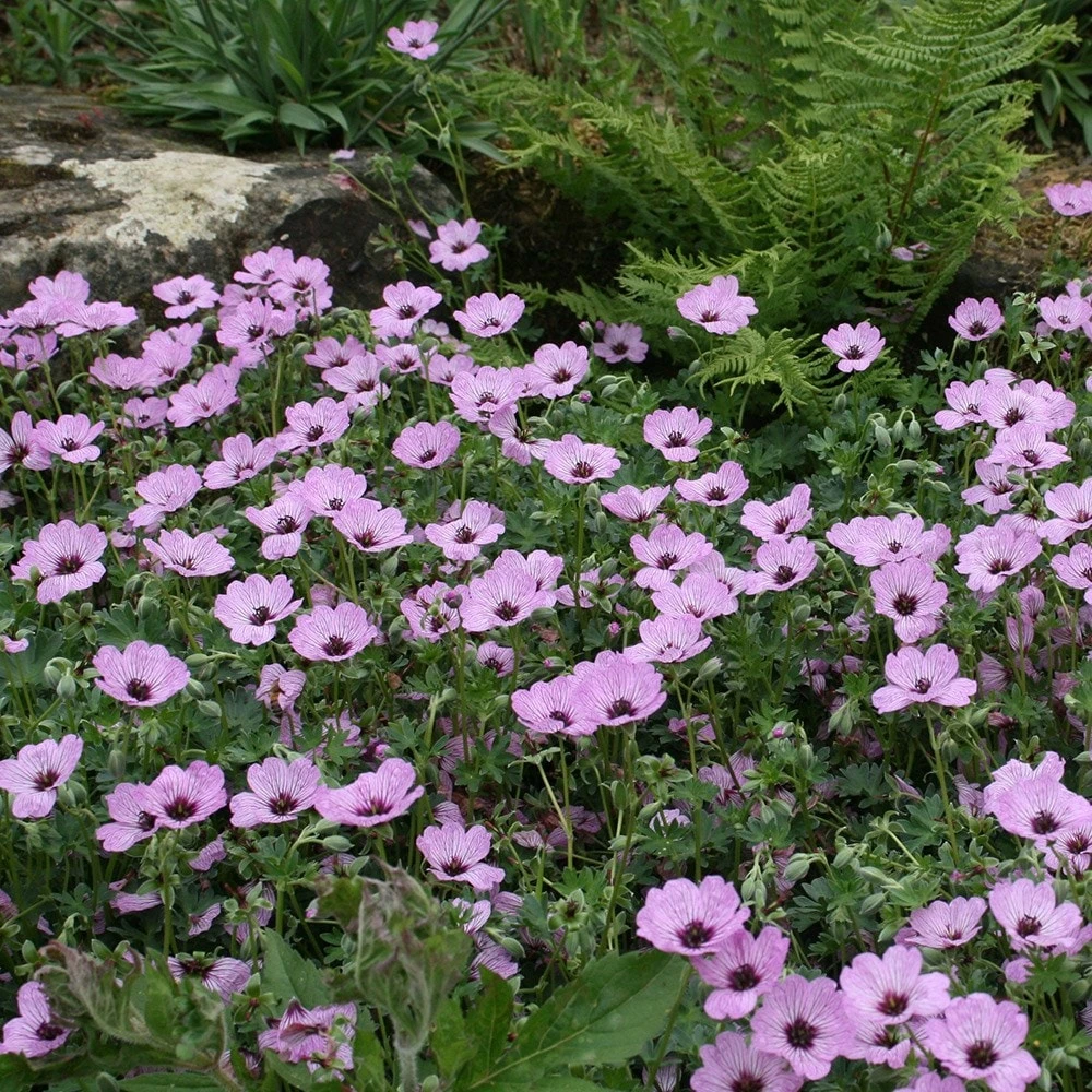 This early-flowering, dwarf geranium has small, deep pink flowers with maroon veins and centres and pretty, deeply cut, grey-green leaves. It looks particularly good planted en masse in a rock garden, or at the edge of a raised border, where its rather shy flowers can be appreciated. Provided it has good drainage, it will produce a mass of attractively veined pink flowers from late spring to early summer.