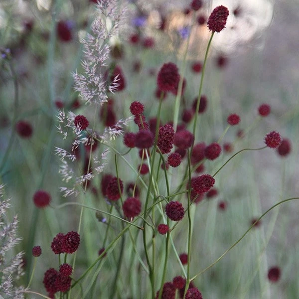 The grass creates a softly swirling sea, which is punctuated by the bobble-like flowerheads of the sanguisorba. Super.