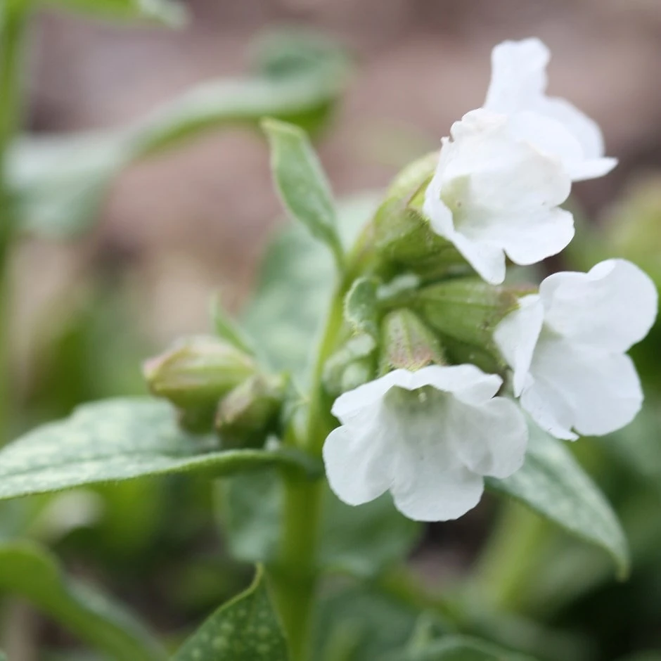 Delicate, pure-white, funnel-shaped flowers in early spring and white-spotted, bright-green leaves. This dainty pulmonaria is perfect for shady areas. One of the first to flower, it looks lovely alongside miniature daffodils. Best in a soil that remains moist over summer, since mildew can take hold if the roots dry out.