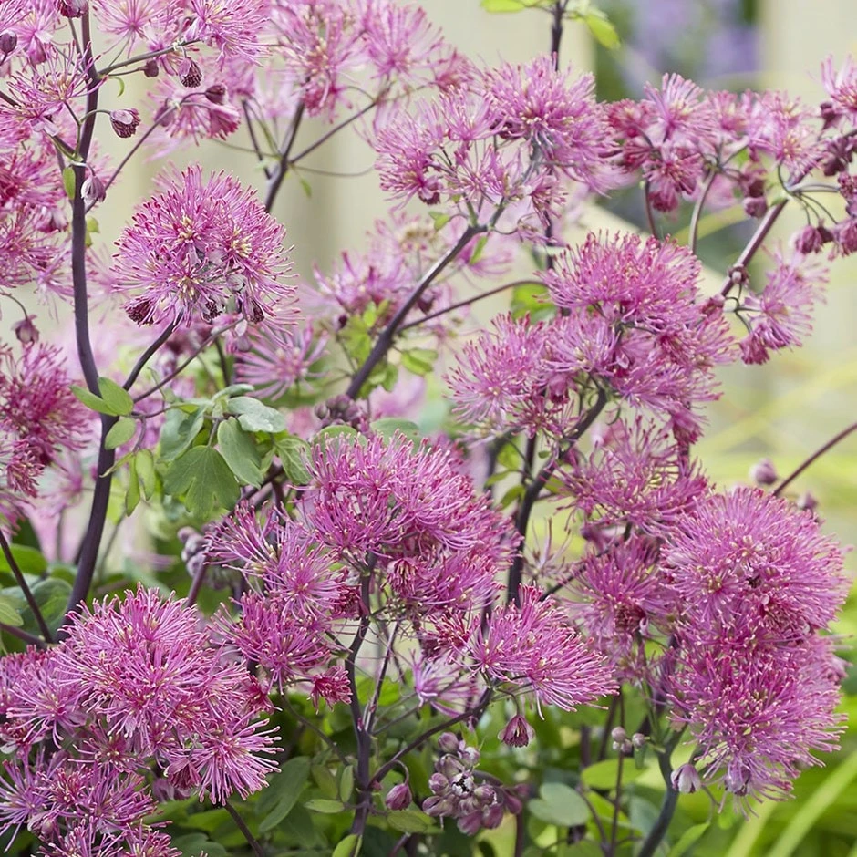 A dwarf, airy, fluffball-flowering perennial for drifts in the front of the herbaceous border or subject for a patio pot. Finely cut foliage, reminiscent of an adiantum fern, โLittle Pixieโ send up mischievous, frothy pink flowers on dark, slender stems to attract attention from pollinating insects. Ideal for wildlife and cottage gardens where its pastel, hazy clouds will delight all.